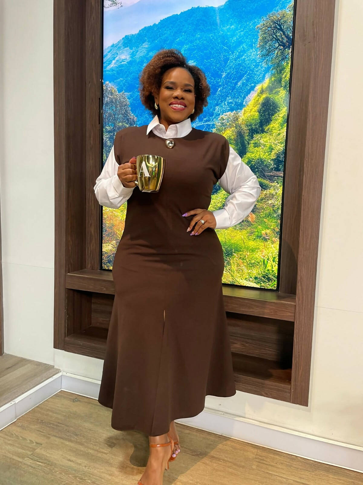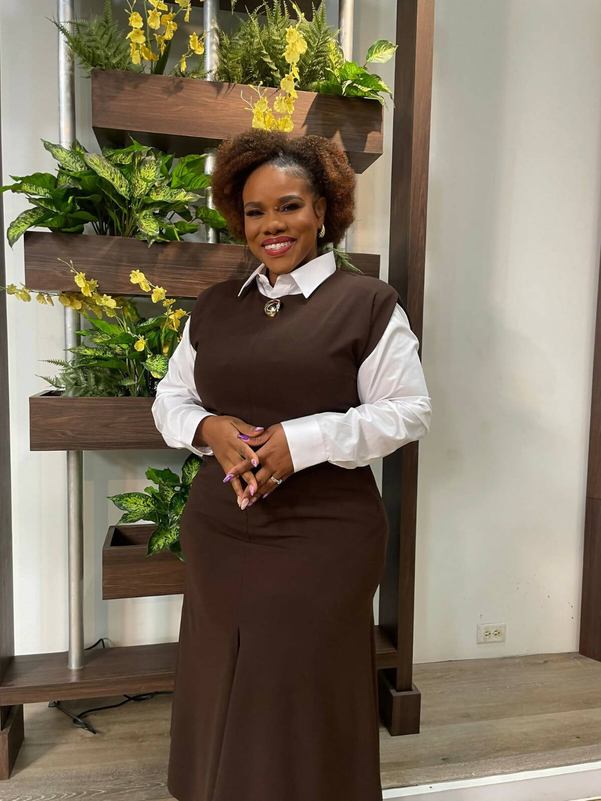 Crew neck brooch detail dress.