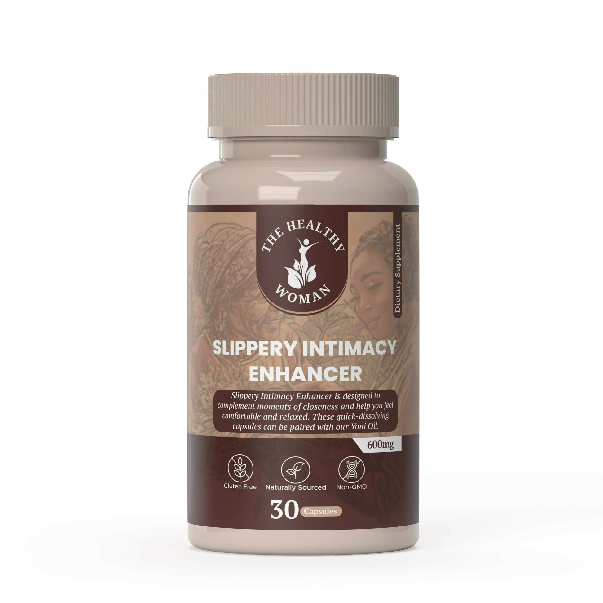 Slippery Intimacy Enhancer Capsules are designed to support natural lubrication and relaxation. This herbal blend works to encourage comfort, ease, and hydration, helping women feel confident and connected.